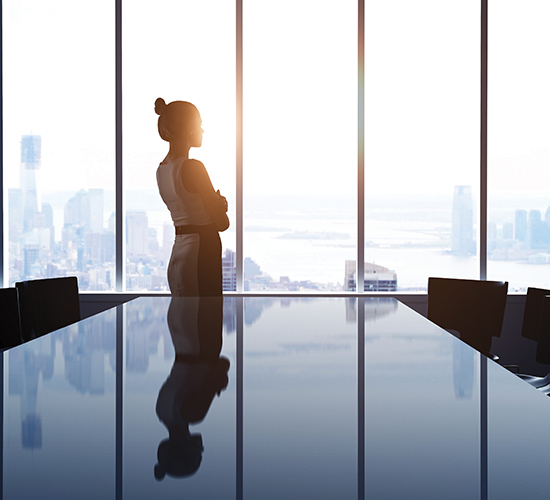 A businesswoman looking out the window of her office - Lagentium Insurance Brokers